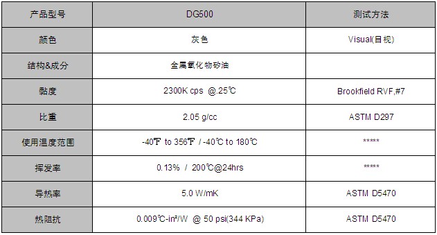 DG500導熱膏/導熱硅脂是灰色膏狀的高效散熱產品,填充在電子組件和散熱片之間,它能充分潤濕接觸表面,從而形成一個非常低的熱阻界面,散熱效果比其它類散熱產品要優越很多。